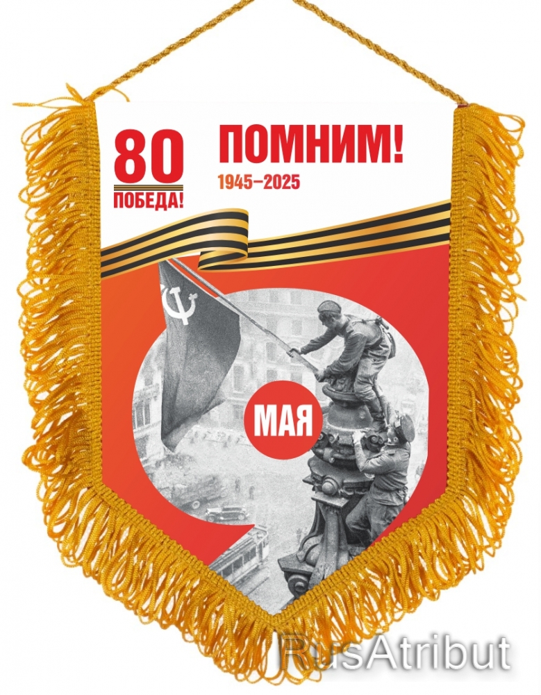 Юбилейный вымпел 9 мая 80 лет Победы высокого качества по выгодной цене. Быстрая доставка по России и Миру.